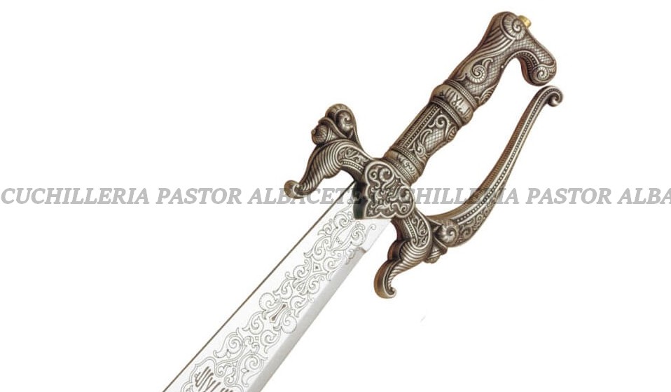 Este modelo exclusivo de Marto mantiene el estilo clásico del alfanje moruno, evocando la tradición espadera de Toledo, uno de los centros más importantes de fabricación de espadas durante la dominación árabe.