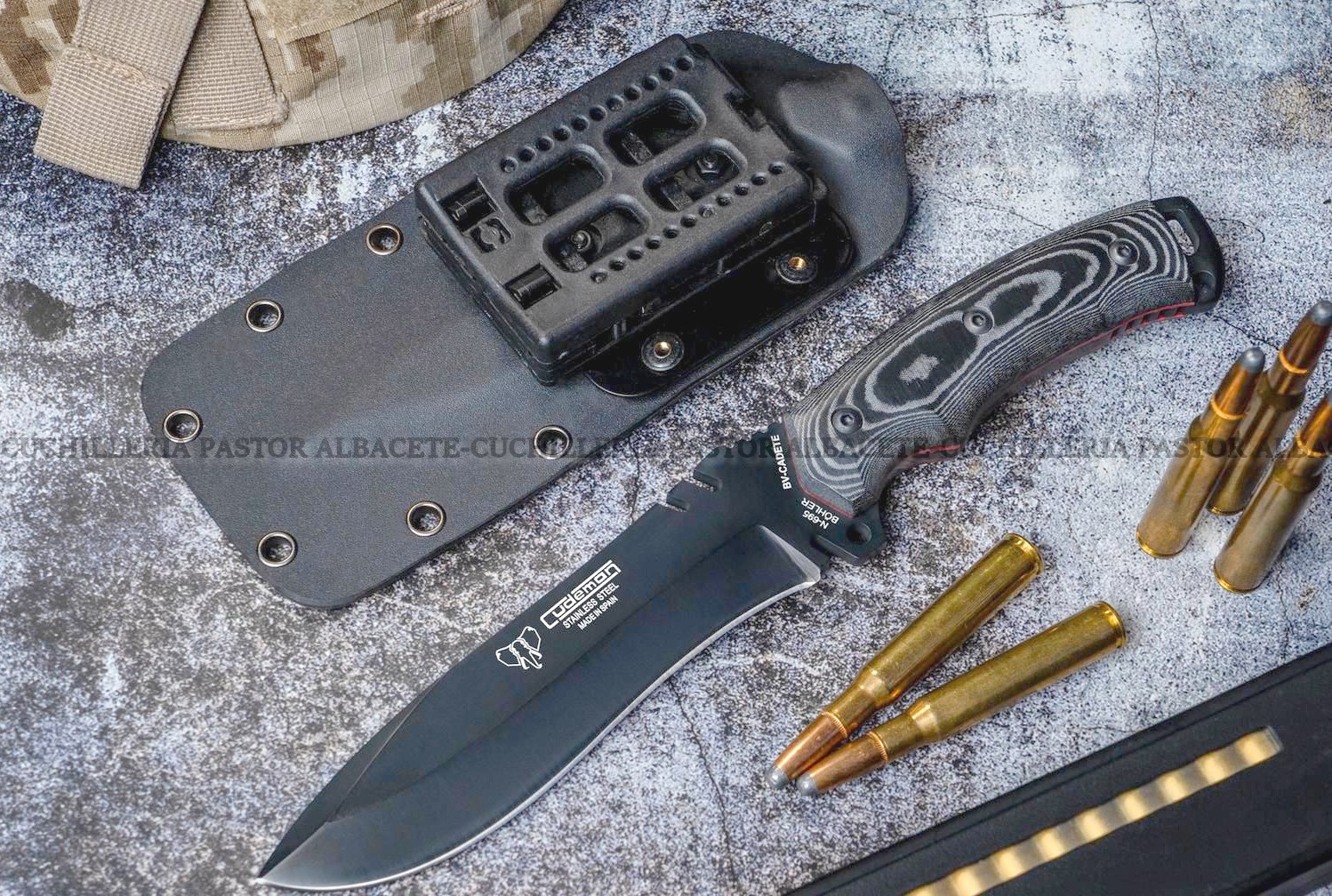 Materiales premium: Acero Inoxidable Böhler N-695 pavonado en negro de alta calidad, excelente retención de filo y resistencia a la corrosión