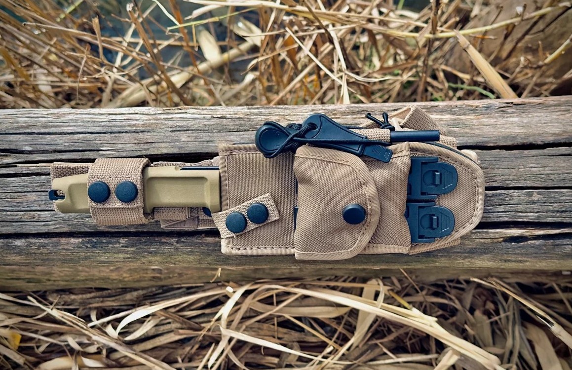 La versión Expeditions incluye una funda de cordura militar con sistema MOLLE, adaptable a cinturones, mochilas o chalecos tácticos.