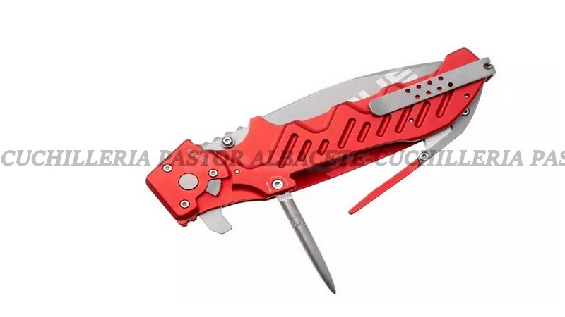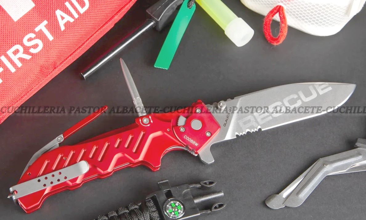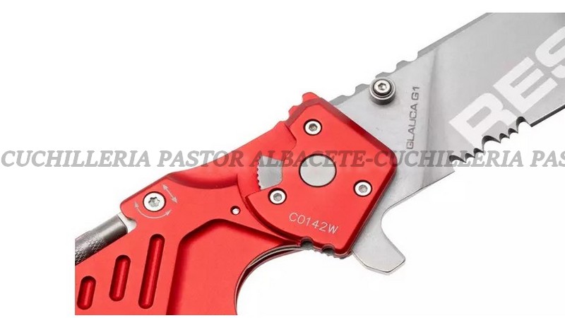 Incluye una punta de acero inoxidable (bloqueable en posición abierta) y un rompecristales trasero de carburo de tungsteno, lo que aumenta su versatilidad y potencia, convirtiéndola en una de las navajas plegables más completas para profesionales del rescate.