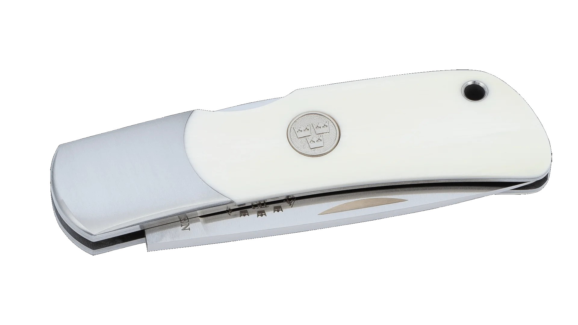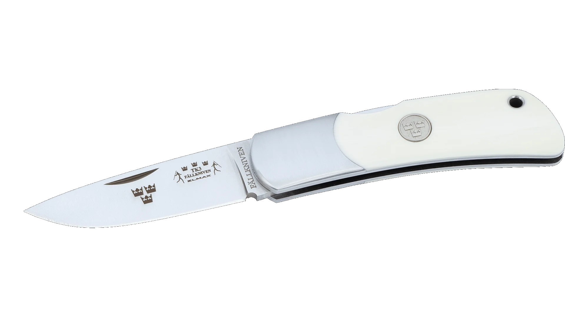 La Fallkniven Tre Kronor TK3eyc, Acero Elmax,  Elforyn Super Tusk blanco (imitación marfil) es una navaja premium perteneciente a la prestigiosa serie TK3, diseñada para ofrecer máximo rendimiento, durabilidad extrema y precisión de corte en cualquier entorno.
