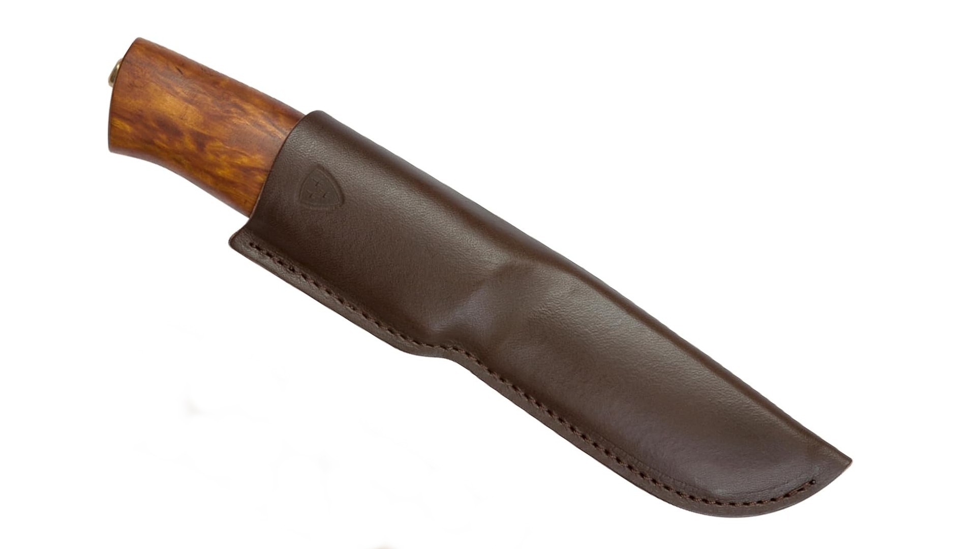 El cuchillo incluye una funda de cuero auténtico, curtida y fabricada en Noruega, ideal para transportar la pieza con seguridad y estilo.