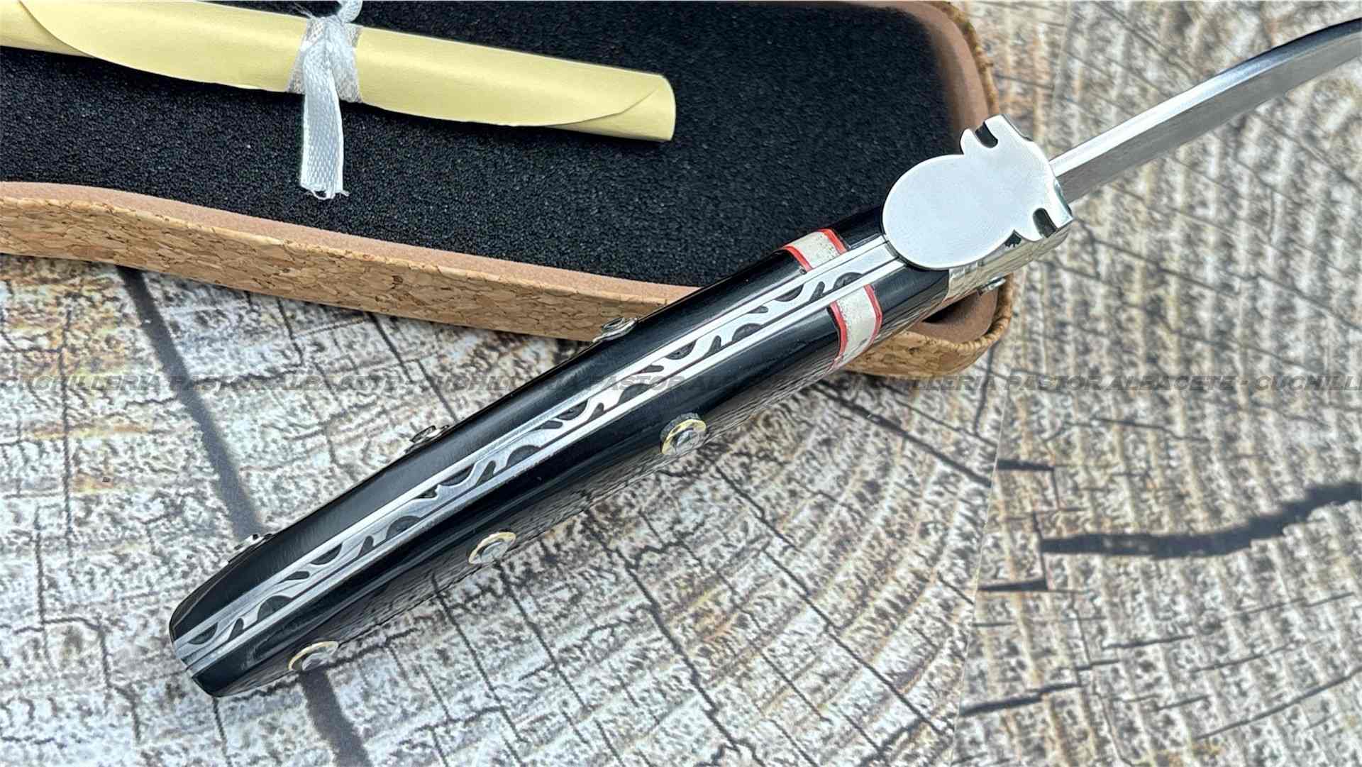 • Muelle interior decorado: El muelle, además de ser funcional, está decorado con detalles que reflejan la calidad y el estilo de la navaja.