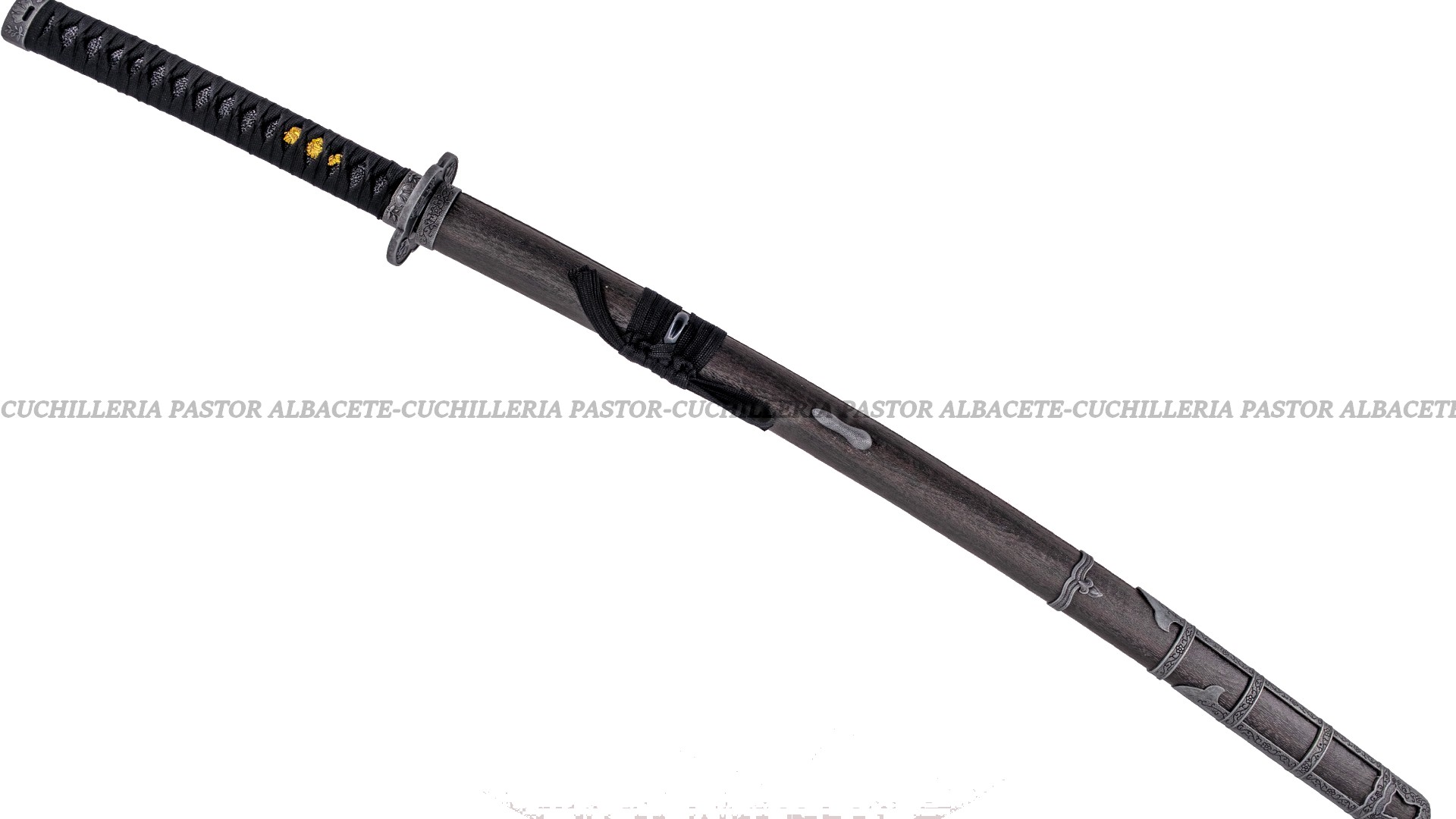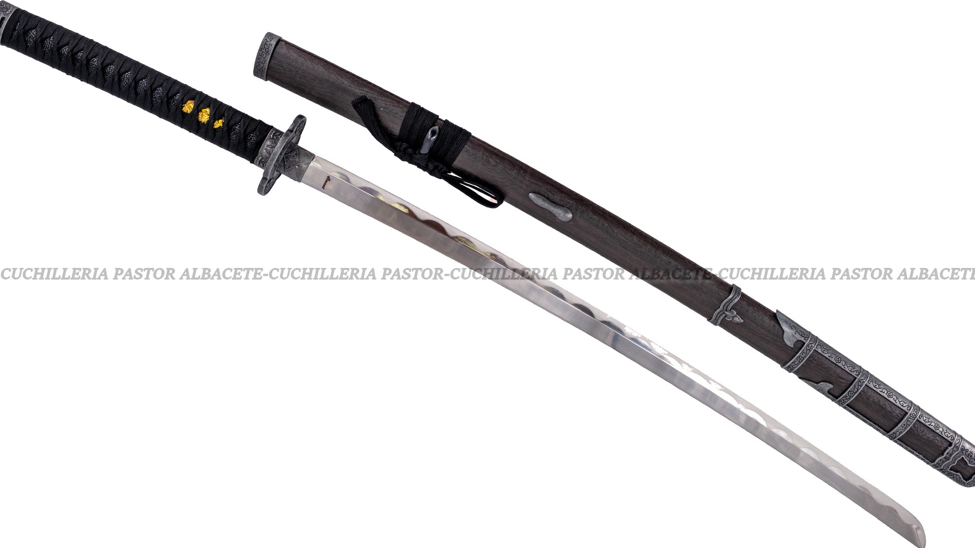 Su vaina de madera marrón aporta un toque tradicional japonés, mientras que el mango encordado en color negro garantiza un agarre firme y una estética cuidada.