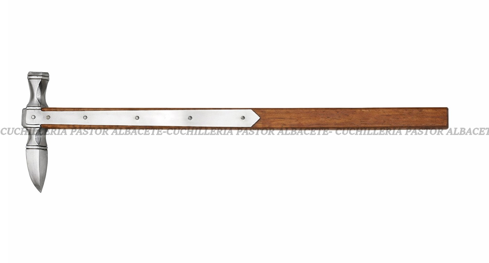 Diseñado como arma contundente especializada contra armaduras, combina una potente cara de impacto con un pico perforante trasero capaz de concentrar la fuerza en un punto reducido.