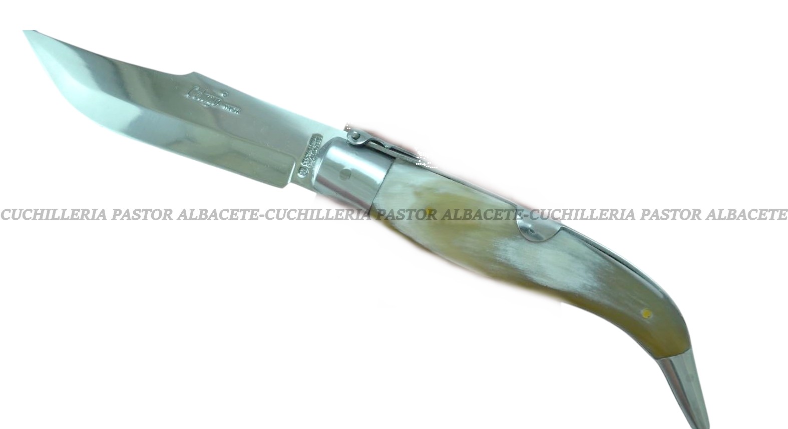 Mango en asta de toro con aluminio: agarre firme y estética tradicional.